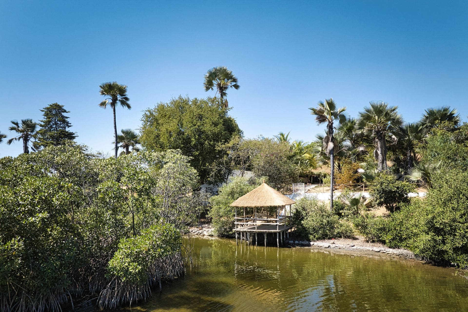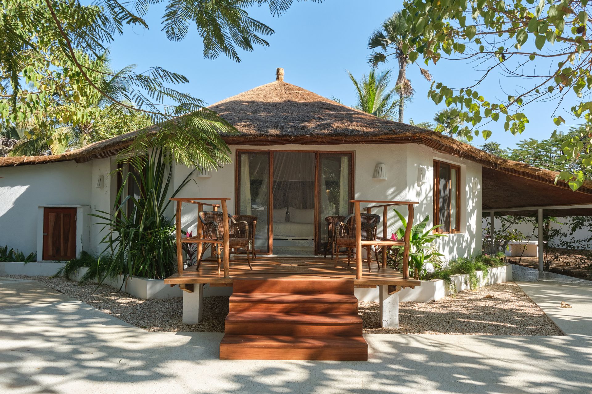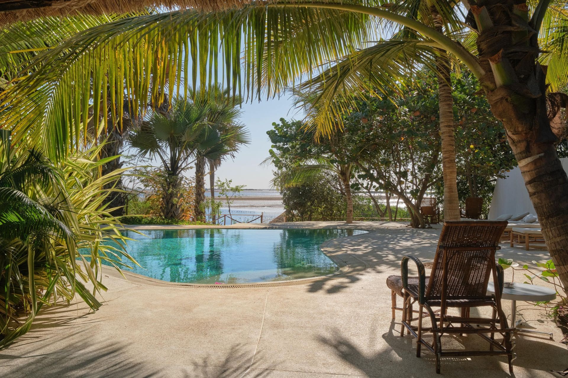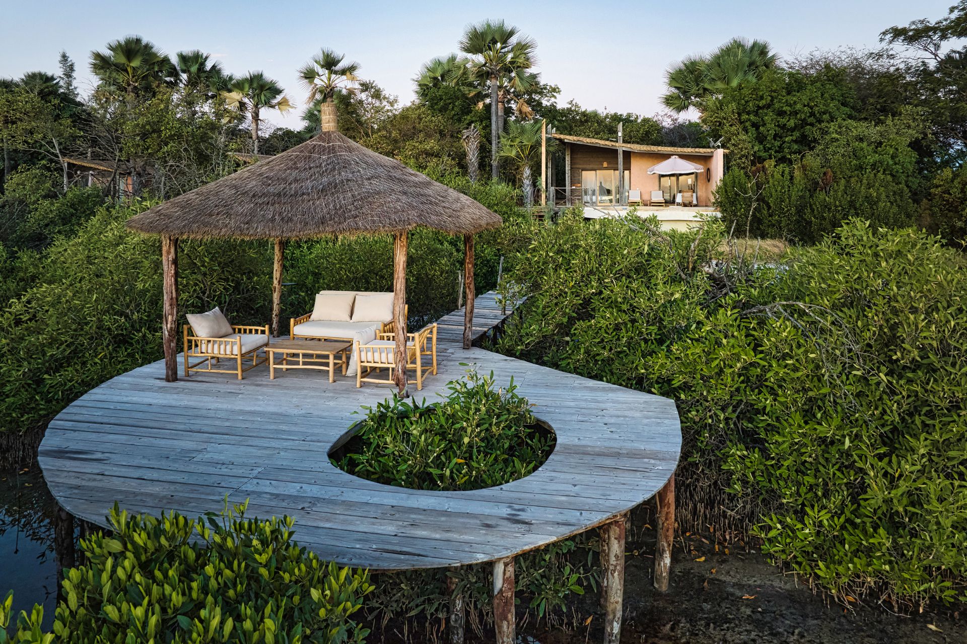 Un ponton privé s’avance sur la lagune, offrant un cadre privilégié pour se ressourcer au fil de l’eau. Un gardien et une gouvernante sont présents sur place pour répondre à vos besoins, vous permettant de profiter des mêmes prestations que l’hôtel : room-service, accès aux infrastructures et totale liberté de circulation entre les espaces.