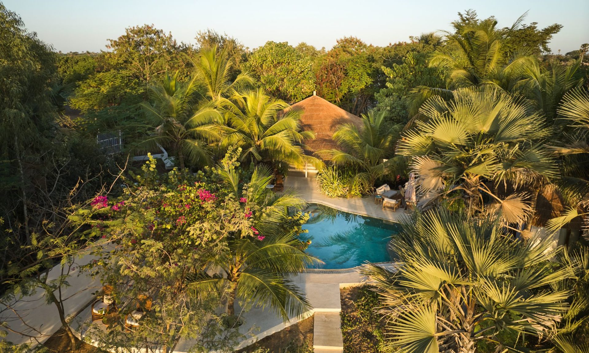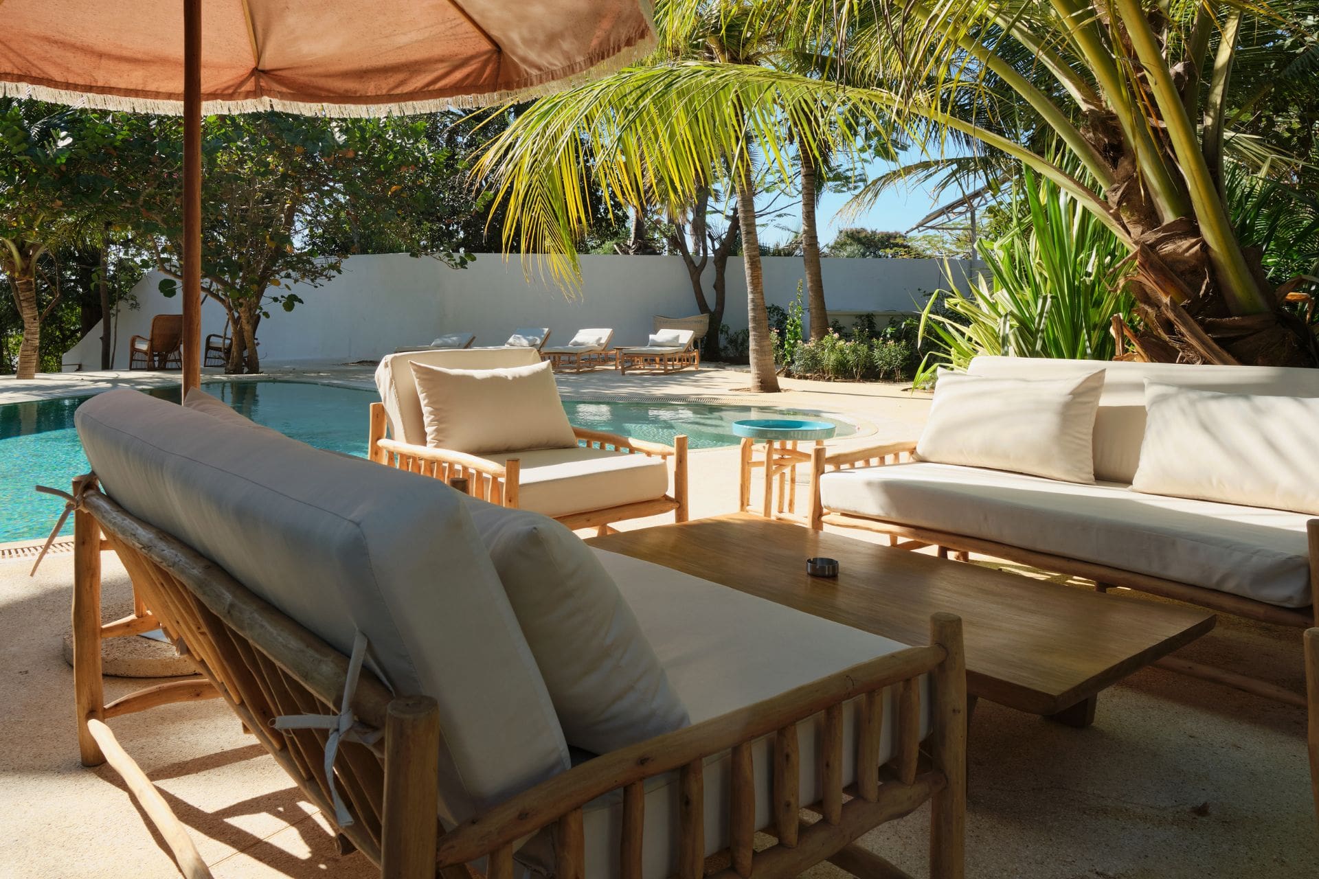 Les espaces communs, à la fois privés et conviviaux, incluent un élégant salon extérieur avec une grande table à manger, une cuisine indépendante entièrement équipée, ainsi qu’une vaste piscine privée partagée entre les deux chambres. Pour des moments de loisirs et de détente, un grand espace extérieur est aménagé avec un terrain de pétanque et une table de ping-pong.